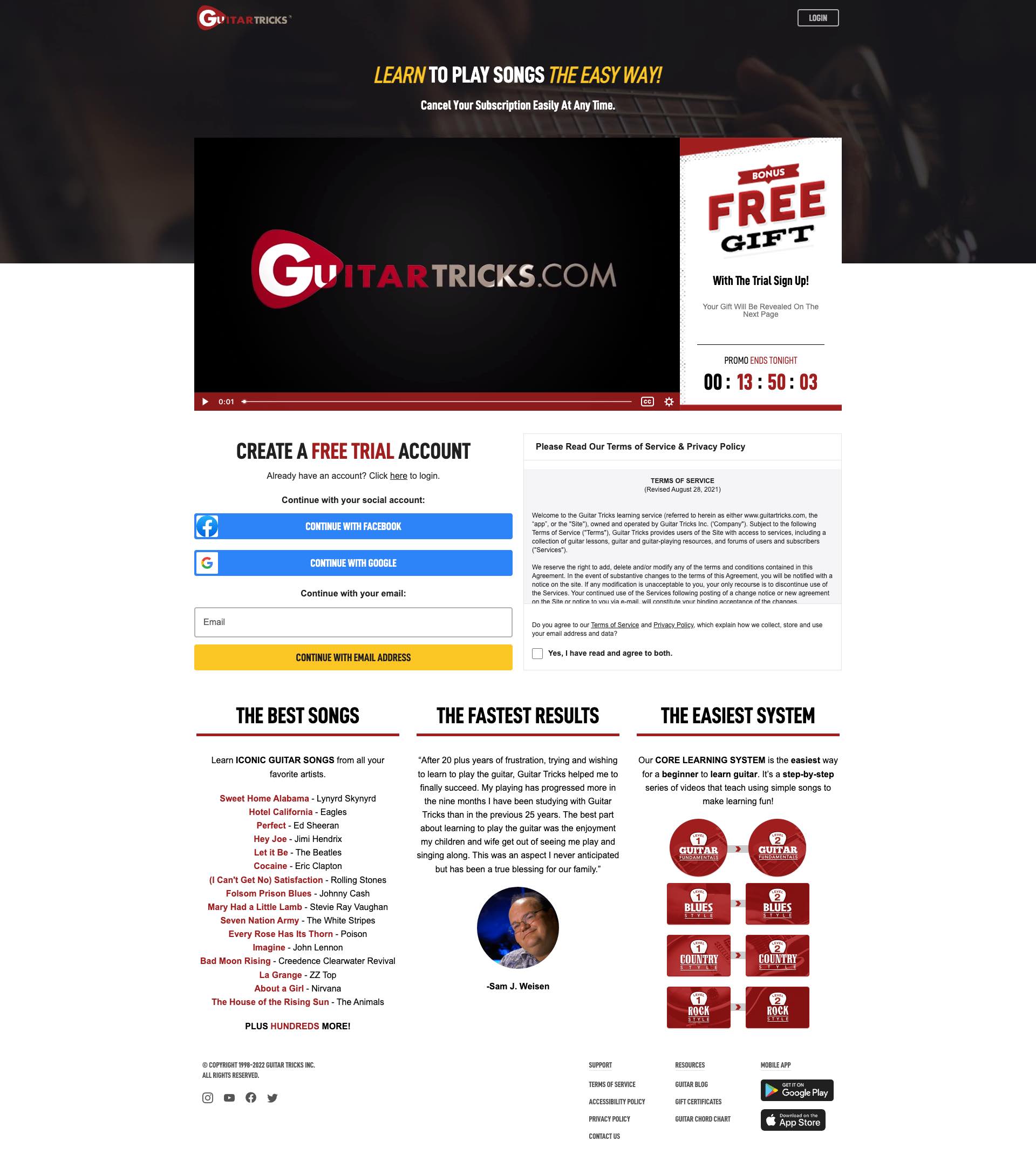 The Guitar Tricks free trial sign-up process can be synthesized into 4 simple steps detailed below: